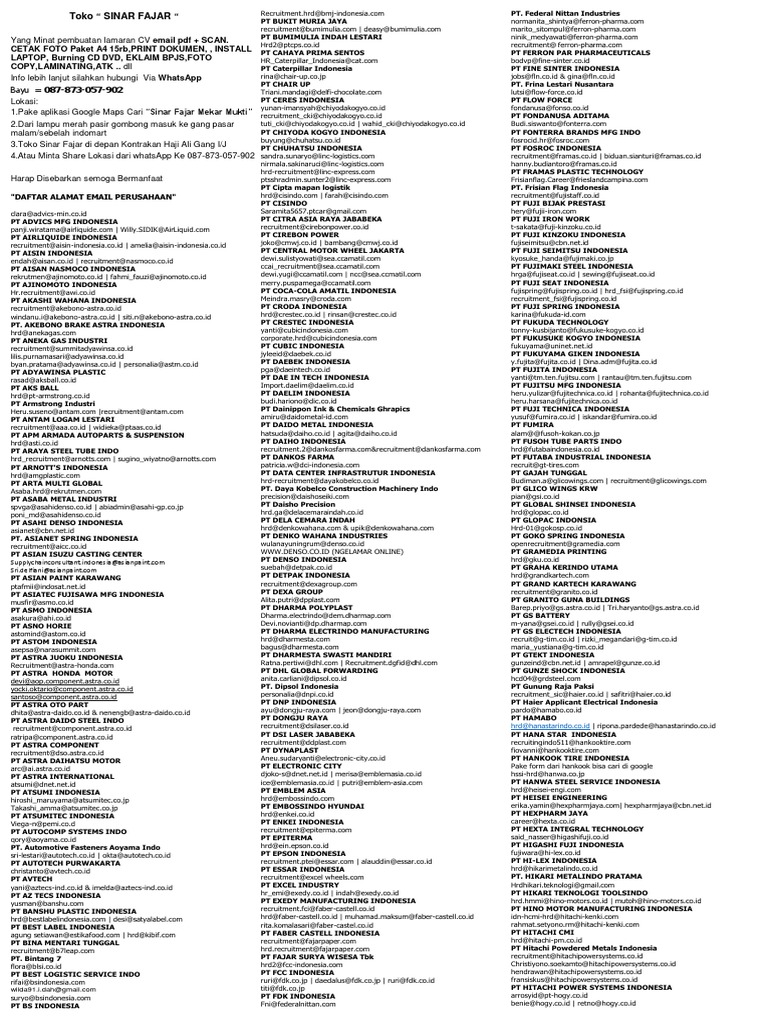 Alamat Email Aktif Perusahaan Random Email Terbaru 2021 from 1.bp.blogspot.com Didirikan sejak tahun 1881, nippon paint adalah perusahaan manufaktur cat pertama dan pelopor industri cat di jepang. Hyundai mobil indonesia email : Lowongan kerja di pt jarum cabawmg maumere; Lowongan kerja pt toyo denso indonesia. Apabila anda berminat dan memenuhi persyaratan dari pt nippon indosari corpindo cikarang diatas, silahkan kirimkan lamaran lengkap via email ke alamat berikut : No 14, 3a road, bien hoa industrial zone ii, long binh tan ward, bien hoa city, dong nai province tel: (62) 21 690 0546 fax: Find places and points of interest around pt.